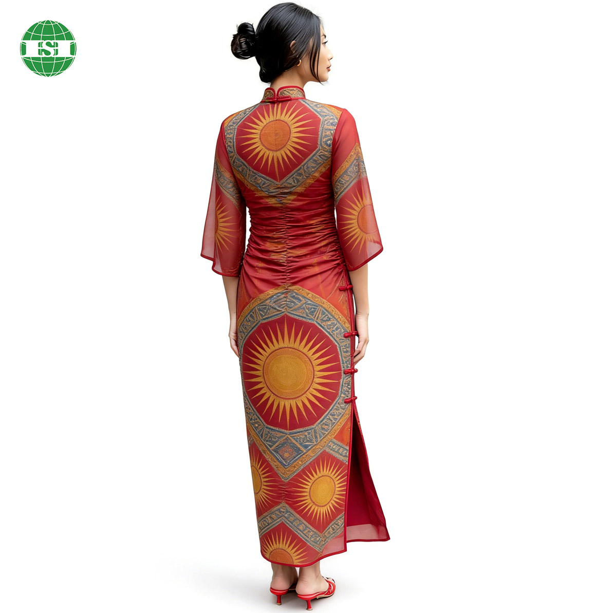 Custom graphic print Side-slit cheongsam