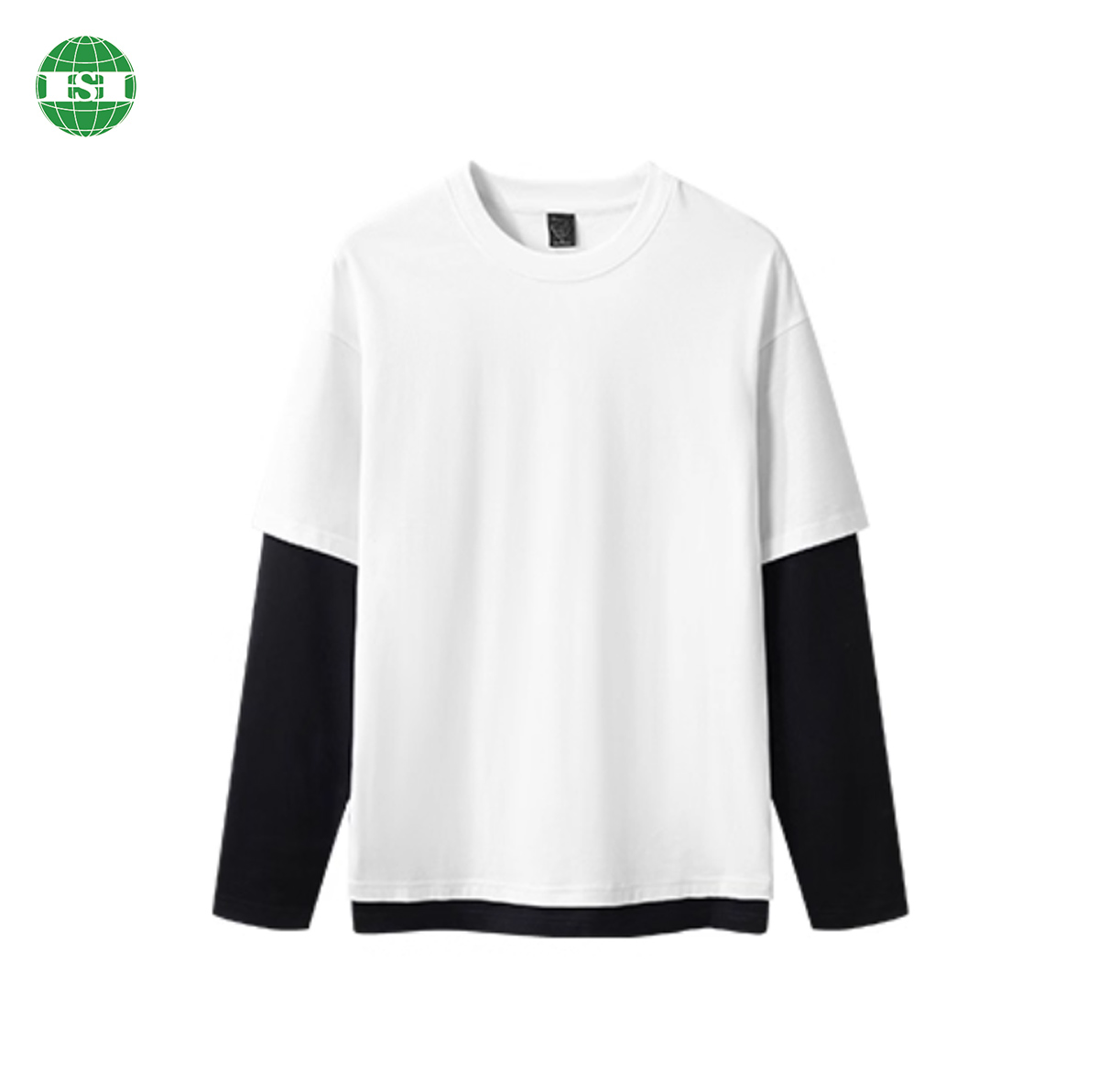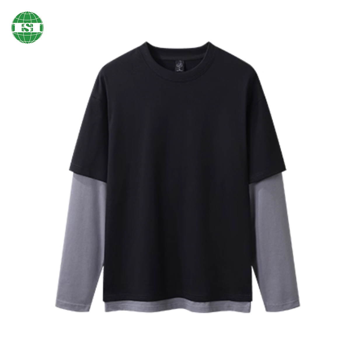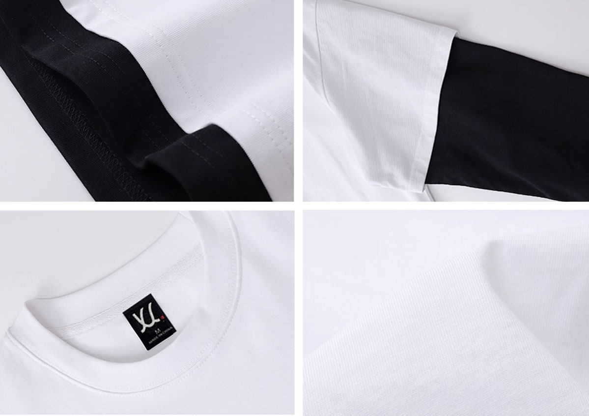 5) Feature: Drop shoulder, stright hem, fake 2 pieces style, two layers sleeve.